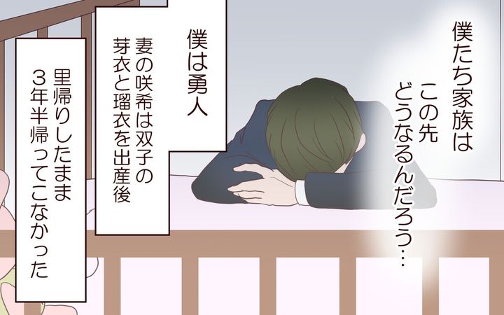 漫画「里帰りした妻が帰ってこない」は実話を元にした作品です。夫・勇人は双子の娘を授かった喜びも束の間、妻が里帰りから帰ってこないまま、3年半という長い月日が流れます…。ついに離婚を覚悟した勇人に明かされたのは、想像もしてなかった妻の「秘密」でした。