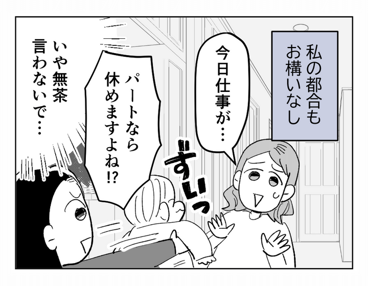 今回の主人公は30代のパート主婦・チサトさん。チサトさんは家族との時間をしっかり取りたいため、パート勤務をしています。いっぽう近所に住む義妹・アヤさんは、出産後もフルタイムでがっつり働く道を選びました。ですが、小さい子どもを抱えてバリバリ働くのは大変です。
