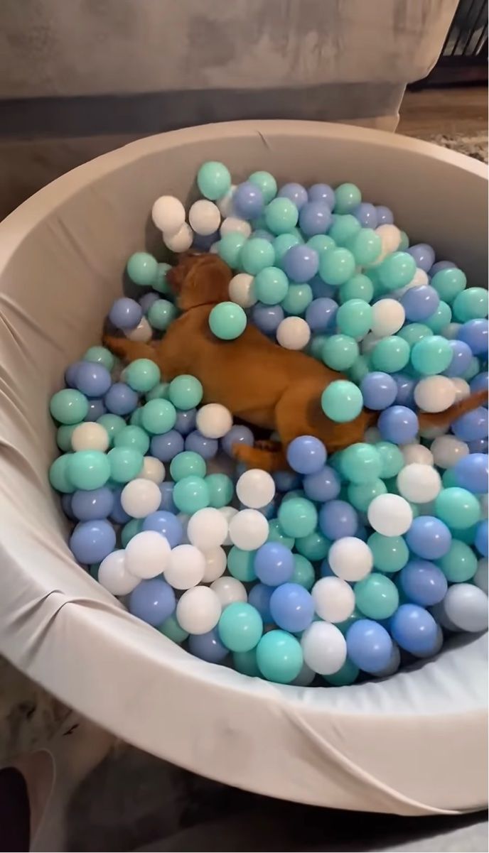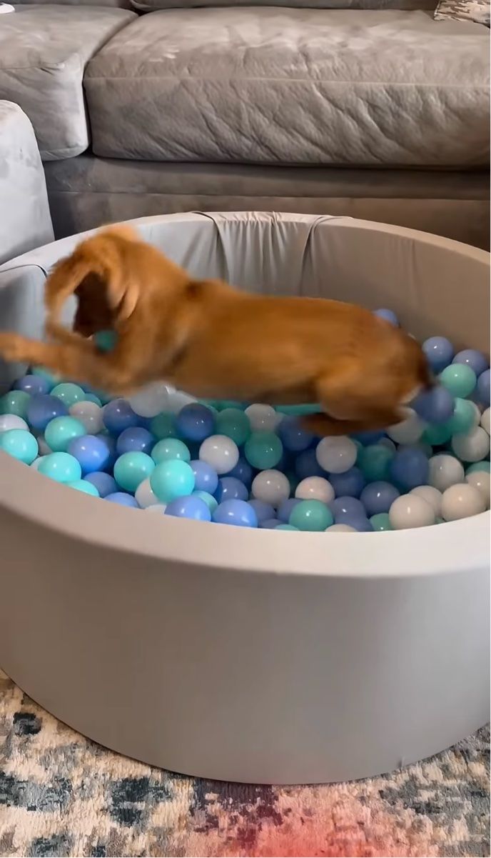 プレゼントしてもらったボールプールに大喜びしている子犬。 その愛らしい姿は、こちらの動画からご覧いただけます。