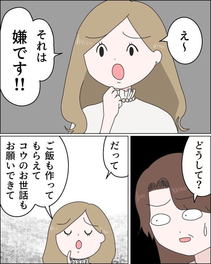 私の都合や負担は一切考えず、あまりに頻繁にコウくんのお世話を簡単に頼んでくるアミちゃん。モヤモヤが募った私は「私を利用するなら同居を解消してほしい」ともう一度伝えました。
