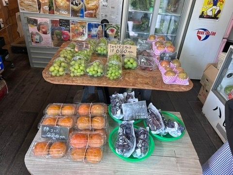 お店に入ると、美味しそうな季節の果物がたくさん。 シャインマスカット680円!お買い得ですね。