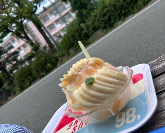 3. 【久留米市】青果店が作る桃一個丸ごと贅沢かき氷♪週3日だけのクレープも