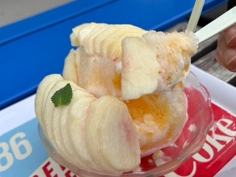 さすが青果店が選び抜いた切りたての桃です。みずみずしくて香り高くてジューシー!最後のひと口まで桃が楽しめるぜいたくかき氷ですね〜 秋の入り口とはいえまだまだ昼間は暑いので、あっという間に食べちゃいました。 美味しい桃を丸ごと1個食べられるなんてほんと贅沢ですよね。 まさに「青果店だからできるかき氷」でした。