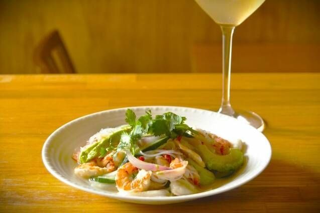 白ワインとの相性抜群! プリッとしたエビと春雨を使ったエスニックサラダは、刻んだ青唐辛子の辛さがアクセントになり、やみつきになる味わいです。ライスペーパーで包んで生春巻きにすれば、見た目も華やかでおもてなしにも喜ばれますよ。