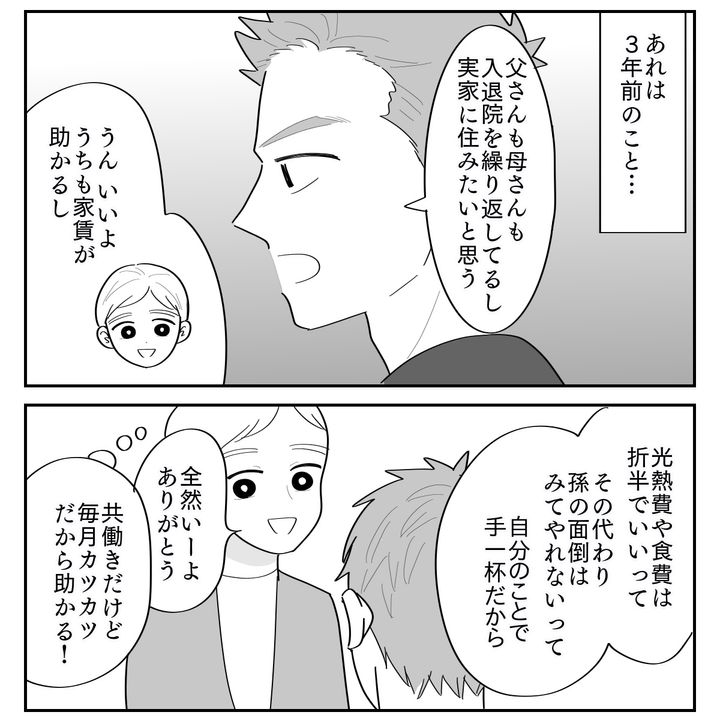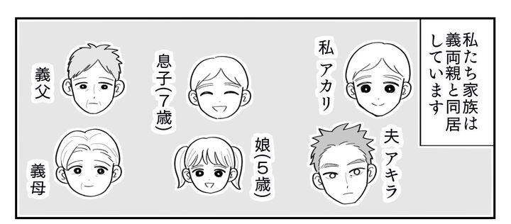 私は会社員のアカリ(35歳)。夫のアキラ(40歳)と結婚して息子(7歳)と娘(5歳)がいます。3年ほど前、当時近居だった義母が入院をしました。義父が家にひとり残されるかたちになって心配だと夫が言うので、私たちは家族で引っ越して義実家同居をはじめたのです。それからは義父も義母も入退院を繰り返している状況です。ただ家賃が浮くのはわが家にとっても大きなメリットだし、義両親も感謝してくれて同居生活はそれなりに上手くいっていました。