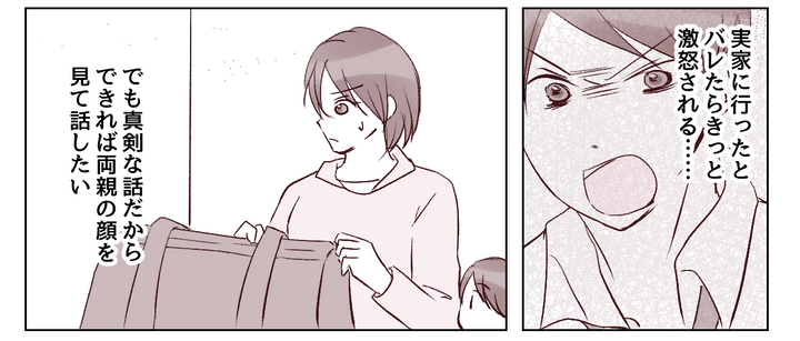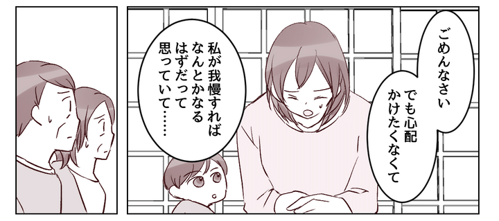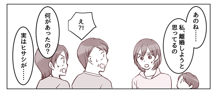 ヒサシの目を盗んで実家へ行った私は、素直に現状を伝えました。ヒサシから受けている仕打ちや暴言を詳しく話すと、両親は言葉を失っていました……。機嫌を損ねないようにひたすら謝っているうち、私はその状況にすっかり慣れてしまっていたのかもしれません。