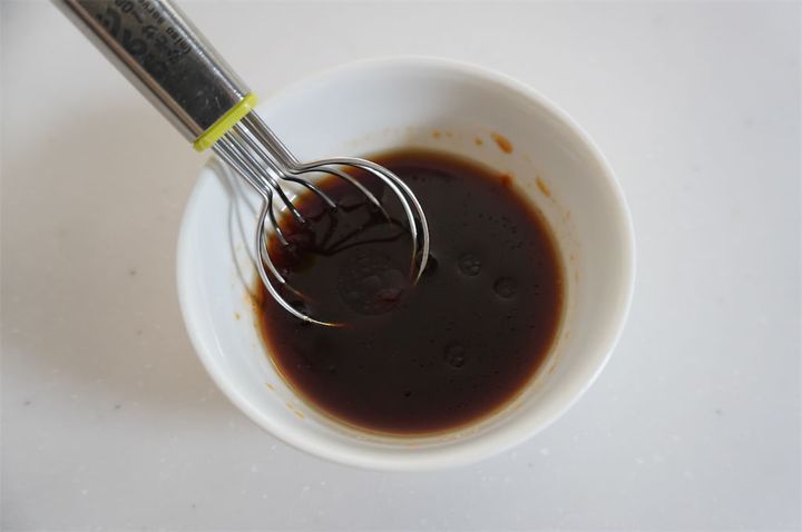 [A]のしょうゆとゴマ油に、砂糖とコチュジャンを溶かすように混ぜます。