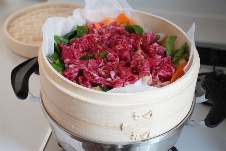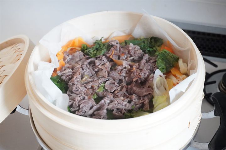 材料を入れて蒸すだけ♪「せいろで簡単!牛肉のチャプチェ風」