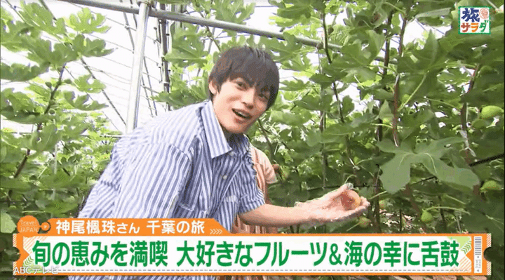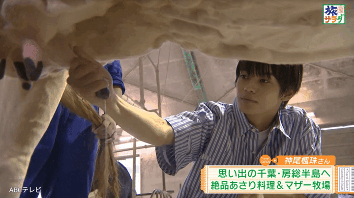 そんな神尾は、初出演の『朝だ!生です旅サラダ』のロケで、千葉県の房総半島へ。東京都江戸川区出身の彼は、「小さいときから家族で出かけるとなると、千葉に行くことが多かった」のだそう。大人になった神尾は、好物の貝料理を味わい、思い出のマザー牧場で動物たちとの触れ合いやバター作り体験をし、旬のいちじくを収穫して千葉を満喫した。
