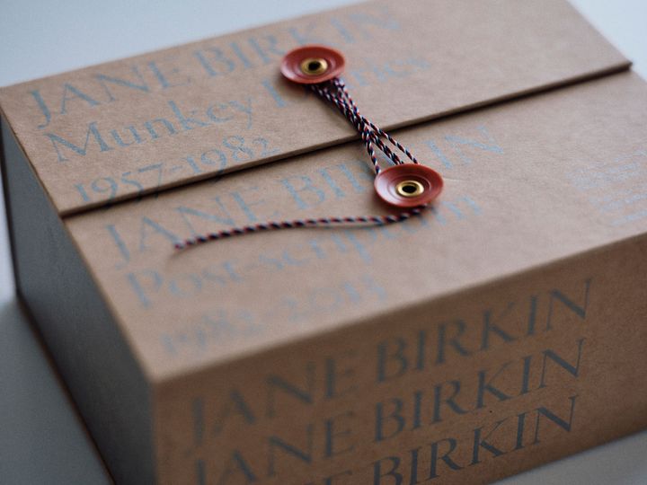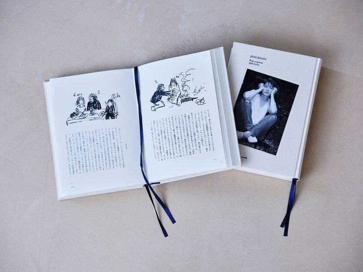 装丁はバーキンの美意識を体現した、ナチュラルで瀟洒な仕上がり。生成りクロス装の表紙に紺の箔押しタイトル、同系色のスピンを2本あしらい、丁寧な手仕事の美が際立つ。2冊の書籍と特典を収める特製函には丸タック式の留め具を採用し、繰り返し開閉してもへたらない頑丈な作りとなっている。すべてが職人の手によって仕立てられた本書は、造本そのものがひとつの作品であり、所有することの喜びを味わえる一冊である。