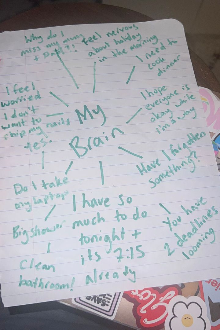 いくつかのTODOリストは残ったままだったが、何週間も引きずっていた憂鬱な気持ちが紙の上で徐々に紐解かれ始めた。「今後の休暇のことが心配なのかそれ以外のことが心配なのか、自分でもわからない」「どうしたらすぐにストレスに押しつぶされそうになるのを止められるのだろう?」「返信しなければならないメッセージがたくさんある」などだ。