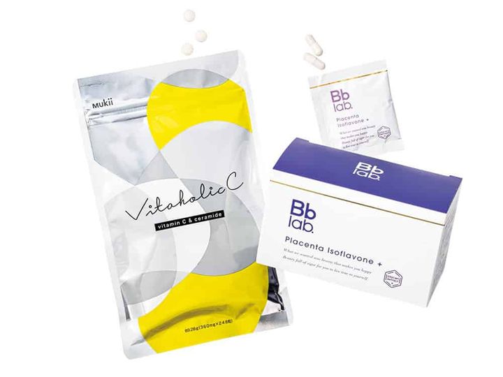 (左)ビタホリック C 248粒 ¥4,290/MUKII(右)ビービーラボ プラセンタ イソフラボン+ 2粒×30包 ¥9,504/ビービーラボラトリーズ