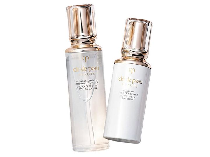 (左から)「みずみずしい潤いで輝く肌に」クレ・ド ポー ボーテ ローションエサンシエルC 170ml ¥14,300、エマルションプロテクトゥリス(ジュール)125ml ¥15,400/ともにクレ・ド ポー ボーテ
