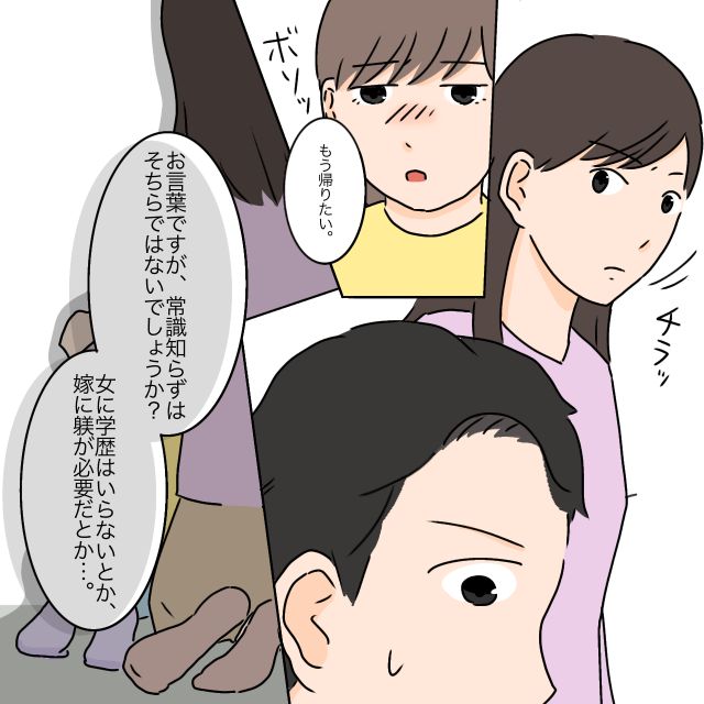 3. 「常識知らずはそちらでは?」男尊女卑を強いる義両親に物申す。女に学歴はいらない|ママ広場マンガ