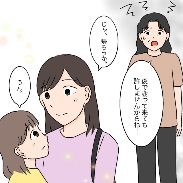 義両親の言葉や態度でマヒロを傷つけるなら、こんな関係はいらない。「後で謝って来ても許しませんからね!」と捨て台詞を吐く義母を無視して、私とマヒロは義実家を後にしました。ずっと我慢してきたことを言えてすっきりしたのか、私の心は今までにないほど軽くなっていました。