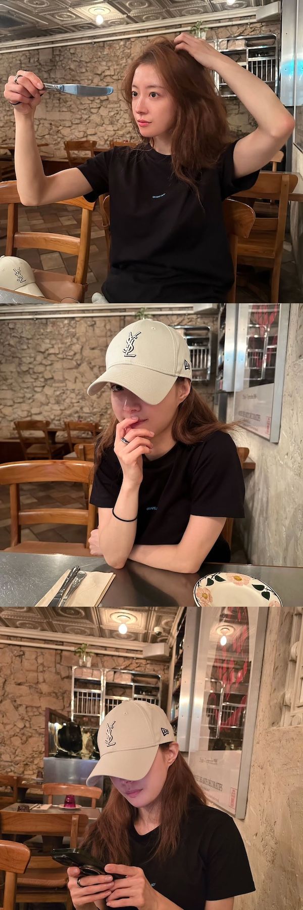 Tシャツにキャップといった飾らない格好でも、はっきりとした顔立ちが彼女の美しさを際立たせ、“女優オーラ”を感じさせる。