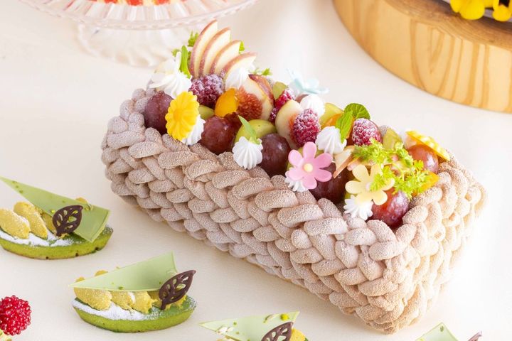 カゴのように絞ったマスカルポーネクリームは芸術的な美しさ。季節のフレッシュフルーツをふんだんに詰め込み、濃厚なチーズケーキとキャラメルムースを同時に味わえる満足感の高いスイーツです。