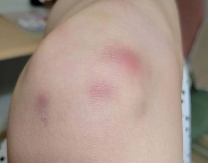 キャリーケースを持って走り続けた結果、膝や腕に痣ができていました。