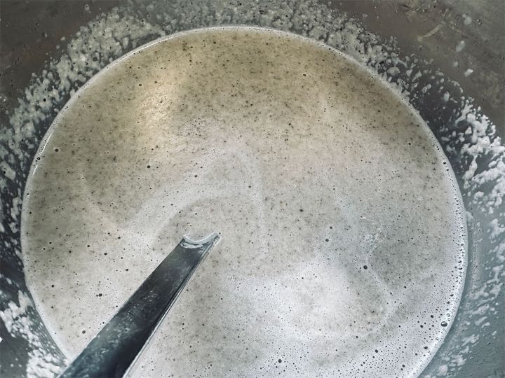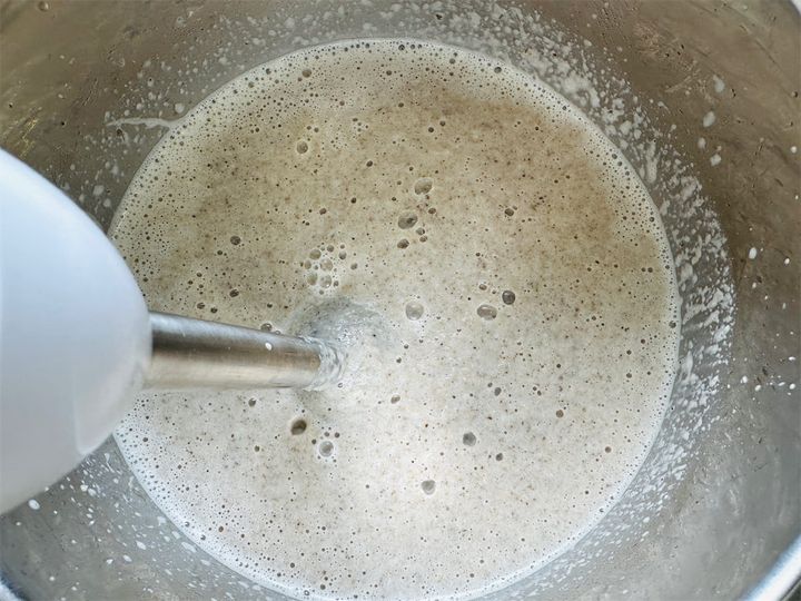 4. ミキサーに3と牛乳を入れて攪拌し、ペースト状にします。