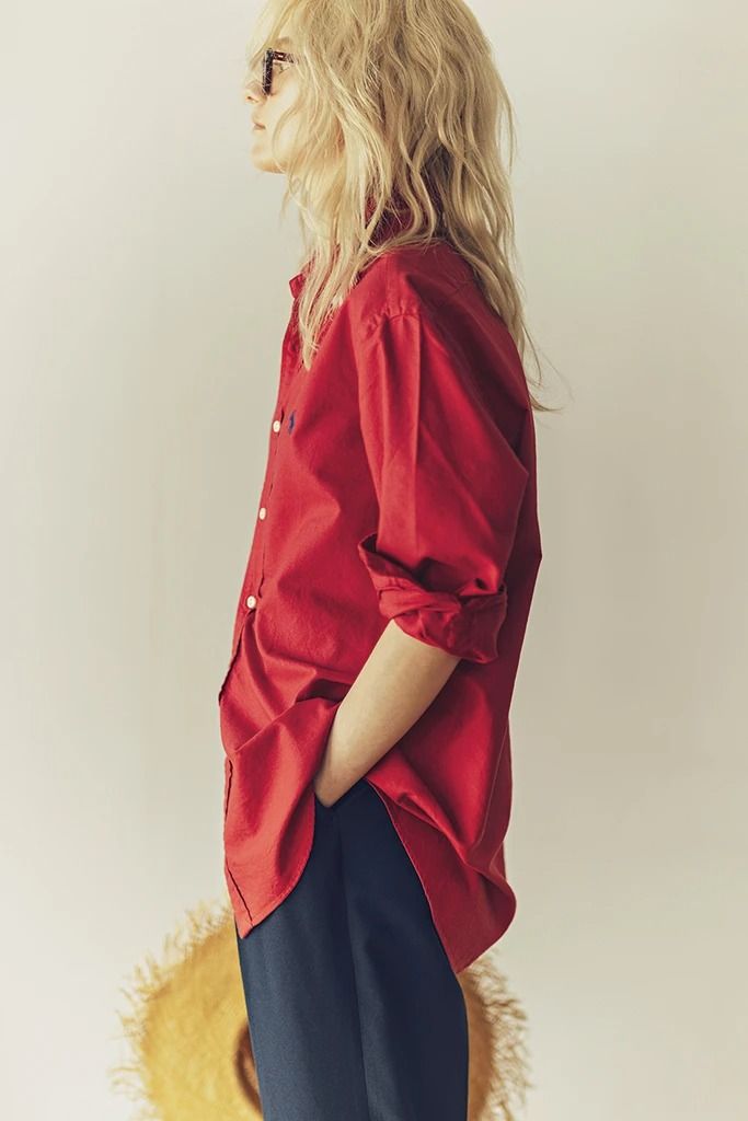 たとえば白ではないキレイ色のシャツも。色の主張をやんわりと削いでくれるリラックスしたシルエット。あえてバサッと雑に着たり、中途半端に見せかけたり。無造作な動作で退屈しない着こなしに。