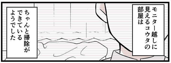 テレビ電話から見える、コウタの部屋を見ると、慣れないながらもちゃんと掃除ができているようでした。コウタは月に2度くらいはこちらの家に帰ってきます。電話とたまの帰宅で、私たちはなんとか「家族」を続けています。まわりから見たら仲の良い家族に見えるのかもしれません。