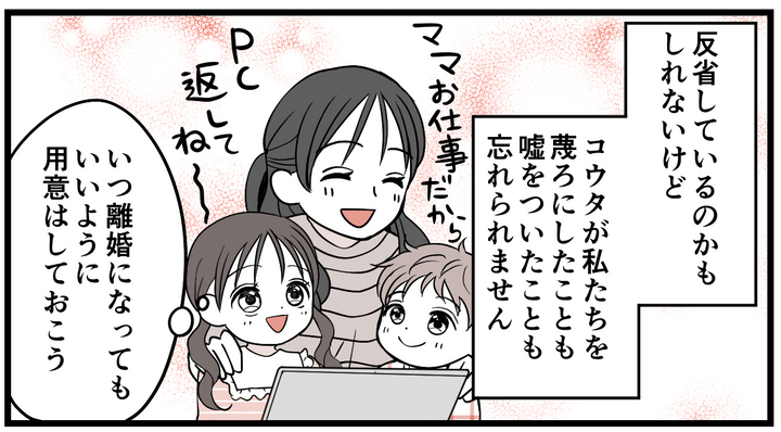 でも……コウタがどれだけ自分のことしか考えていなかったかがよくわかりました。子どもたちの気持ちも私の気持ちもまったく考えていなかった、これはすぐに許す気にはなれませんでした……。