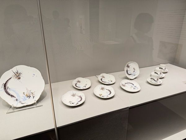 展覧会は全5章構成。プロローグではマイセン窯の誕生から紹介され、日本の「柿右衛門様式」に影響を受けた初期マイセンの作品にも触れられます。第1章からエピローグまでは、ヴェルナーがデザインを手がけたシリーズを中心に、時代別に紹介しています。