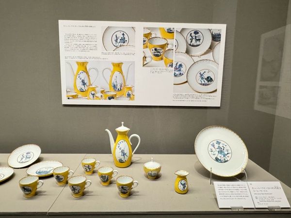 食器の繊細な柄や独特な色使いが大きな魅力のひとつです。見ているだけでティータイムの様子まで目に浮かび、とてもわくわくする展覧会です。