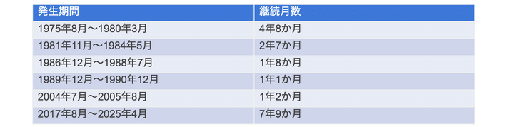 ちなみに、黒潮大蛇行は以下の間隔で発生しています。