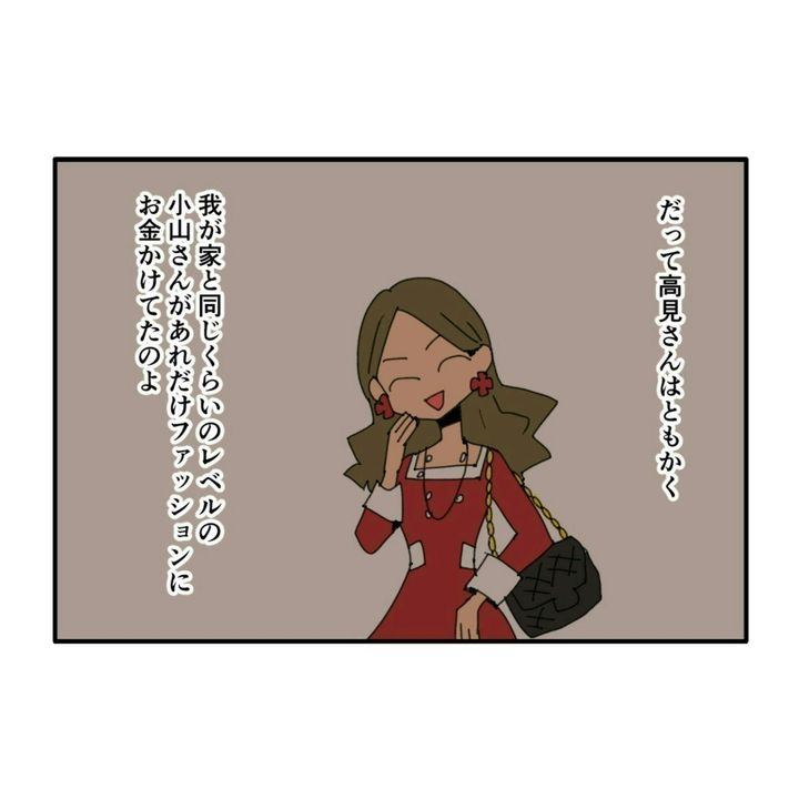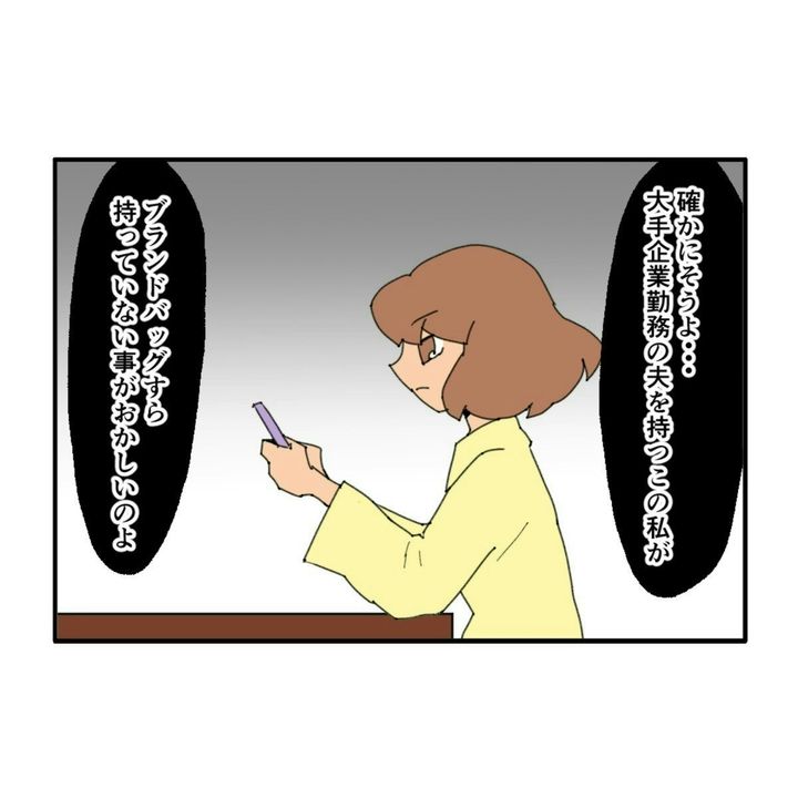 さりげなくハイブランドの衣服や装飾品、家具を持っているママ友たちに焦りを感じたハルミは「自分もここで暮らすならそうした物を持つべき」と考え始めます。