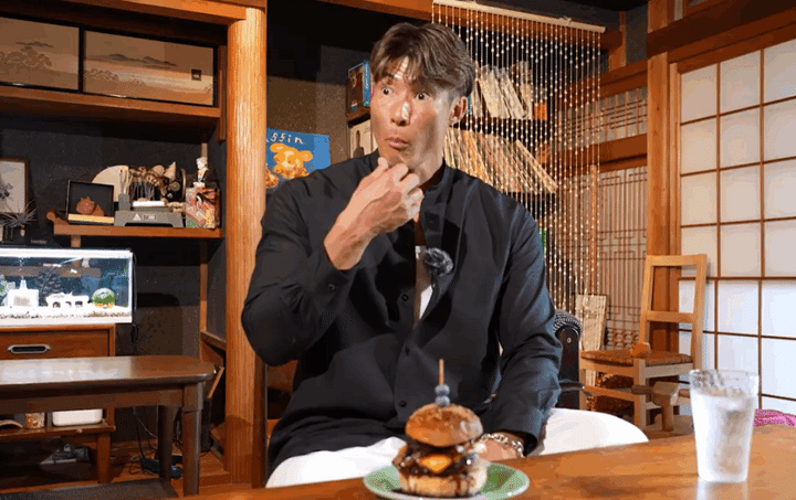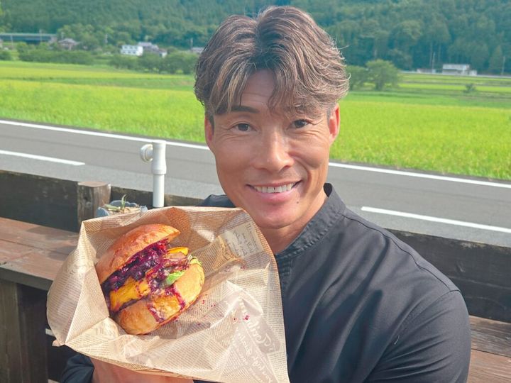 「お肉が好き」「ダイナミックな料理が好きですね」と語る糸井嘉男さんがお腹を空かせて訪れたのは、兵庫県丹波市にあるパン屋さん「市島製パン研究所」。糸井さんの前に運ばれてきたのは、ブルーベリーベーコンチーズバーガーだ。丹波産のブルーベリーでソースを作った絶品バーガーに、糸井さんは「すごい!粒がめちゃくちゃデカいですね!」と驚いた様子。豪快にほおばると「おいしい!」とサムズアップし、「ブルーベリーの甘みと酸味がお肉にマッチしてすごくおいしい」と嬉しそう。ブルーベリーソースは赤ワインで煮て、黒酢を少し入れることで酸味がアップ。ブルーベリーの甘さと溶け合い、肉に合う奥深いソースに仕上がっている。