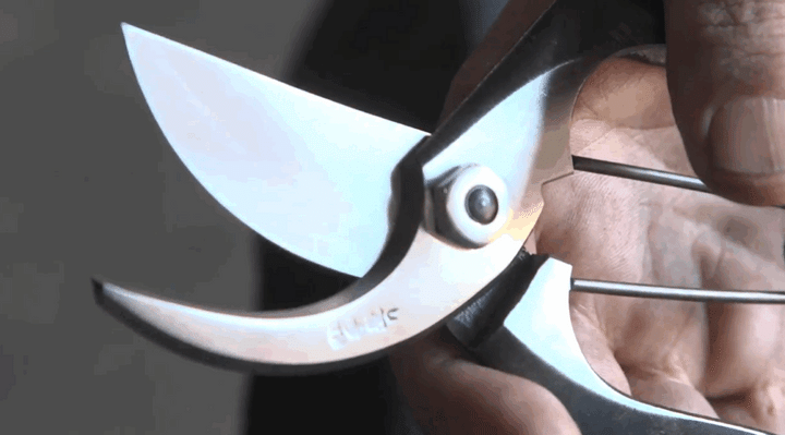 ブルーベリー農家に欠かせないのが剪定鋏(せんていばさみ)。3~4カ月の間、毎日剪定する農家の方が「切れ味が落ちないのが魅力」と語る剪定鋏を作っているのが、この道30年の鍛冶職人・田中さん兄弟。切れ味の決め手は、刃と刃の間にある髪の毛一本ほどの隙間。「鋏の隙間が開きすぎると切れない」といい、「隙間を細くすることで、軽い力でよく切れます」と田中さん。熟練の技で、指先に伝わる感覚と音だけを頼りに隙間を作っている。