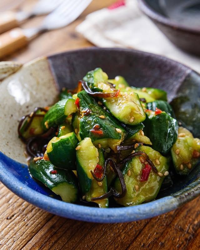 きゅうりをたたいてピリ辛ダレと和えるだけ。包丁いらずの速攻レシピです。塩こんぶのうま味とごま油の香りでお箸が止まりません♪