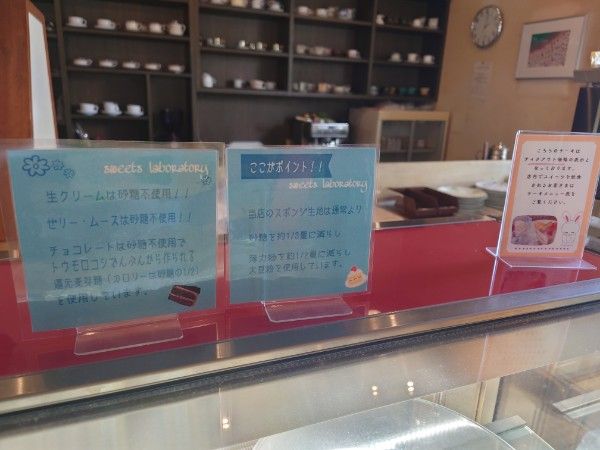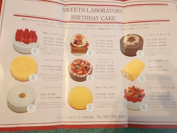 スイーツラボラトリーの本店は針田町にありますが、久米窪田にあるこちらの「カフェ スイーツラボ」でも本店のケーキを販売しているので、バースデーケーキを予約するとこちらでも受け取れます。