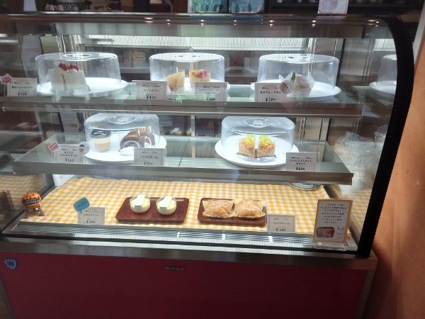 テイクアウトのケーキは、私が行ったのが遅くて結構出てしまったそうで少なくなっていました。美味しそう!テイクアウトだとプリンやシュークリーム、ケーキなどが、200円〜600円というお値段です。