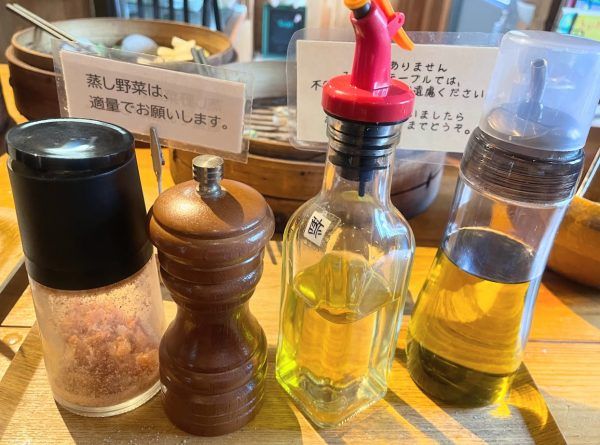 ソースも種類豊富です。岩塩やオイルのほか、味噌のドレッシングやマスタードのオリジナルソースなどがありました。こちらも自分だけのオリジナルサラダが楽しめますね♪