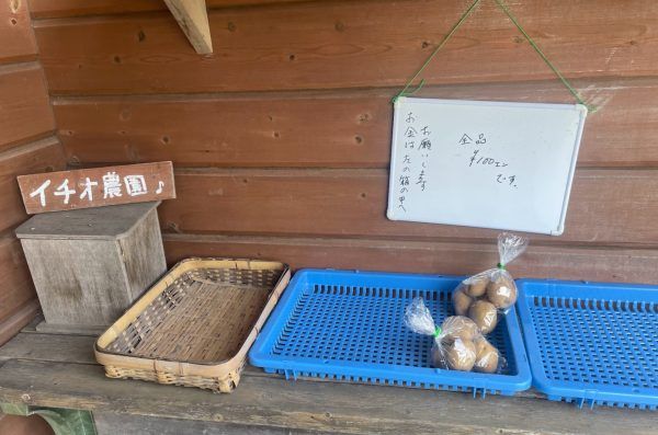 お店の入口付近では野菜も販売されていました。この日は残り2つのジャガイモ1袋100円! 今回は1袋だけ購入♪ 農家直通のお野菜、おいしいですよね~!!