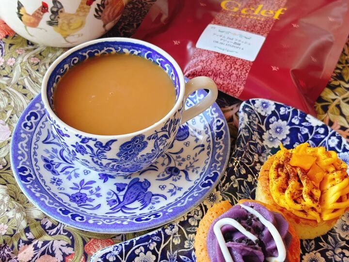 今回ハロウィンのプチケーキと合わせたのは「アッサム2ndフラッシュ デジュー農園」(Gclef・ジークレフ)です。アッサムティの中でも最上の季節といわれているセカンドフラッシュ。味わいも香りも力強く体現されているそうです。個人的にジークレフのアッサムティは大好きで、特にミルクを入れて飲むのにハマっています。
