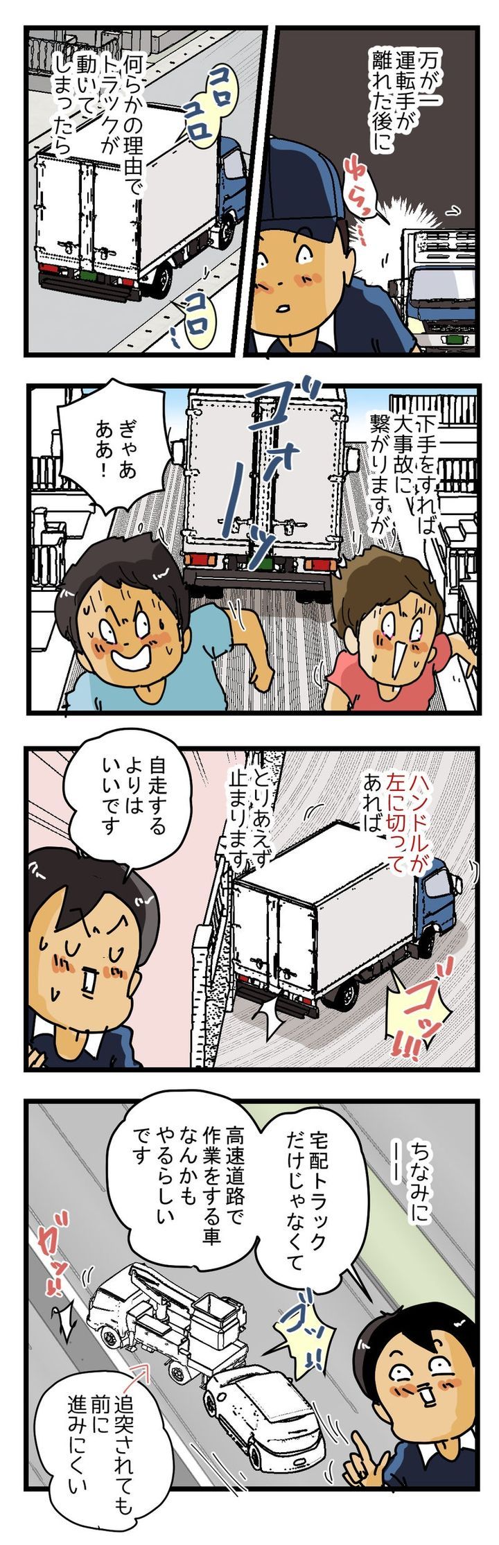 ゆきたこーすけさんは、「主に自走防止のためだと思います。ハンドルが切ってあれば、万が一動いても止まりますからね。他所の業界の事はよく知りませんが、高速道路上でパトカーとか、作業車なんかが止まるときにもやるらしいですし、もしかして働く車は色んな場面でやっているのかも知れないですね」とコメント。宅配便の安全対策の1つを知ることができる、勉強になるエピソードでした!
