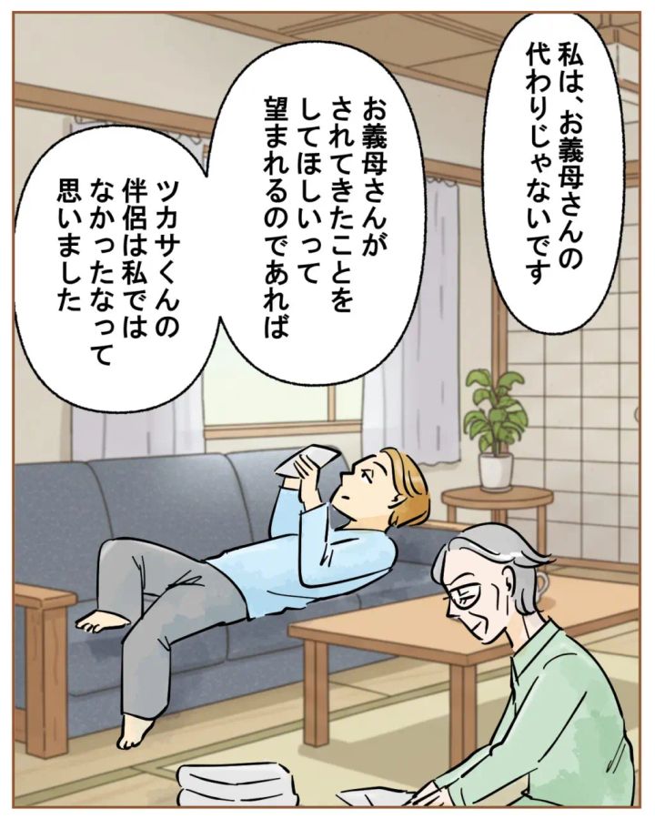 「私は、お義母さんの代わりじゃないです。お義母さんがされてきたことをしてほしいって望まれるのであれば、ツカサくんの伴侶は私ではなかったかなって思いました」とハッキリ言いました。