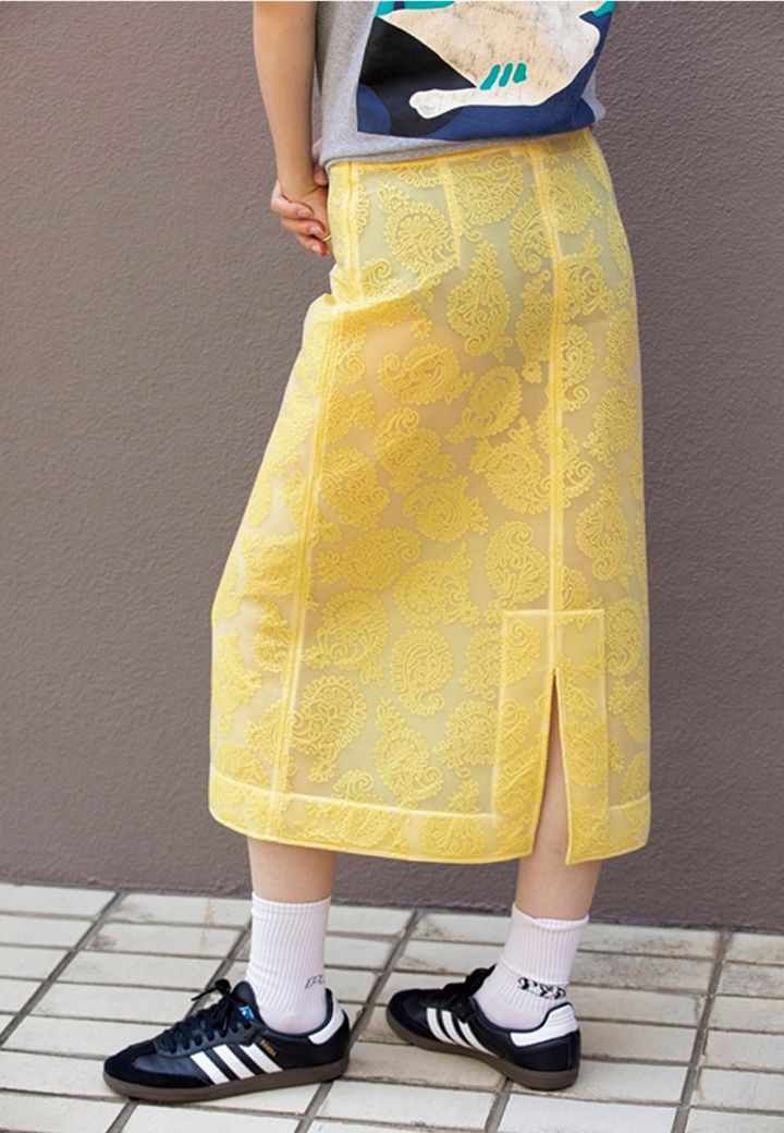 「透け感があり、さらにキレイなシルエットを保つハリ感もたまらなく好き。スタイリングのポイントになるイエローカラーはドレッシーにもカジュアルにも着まわせて大活躍。」