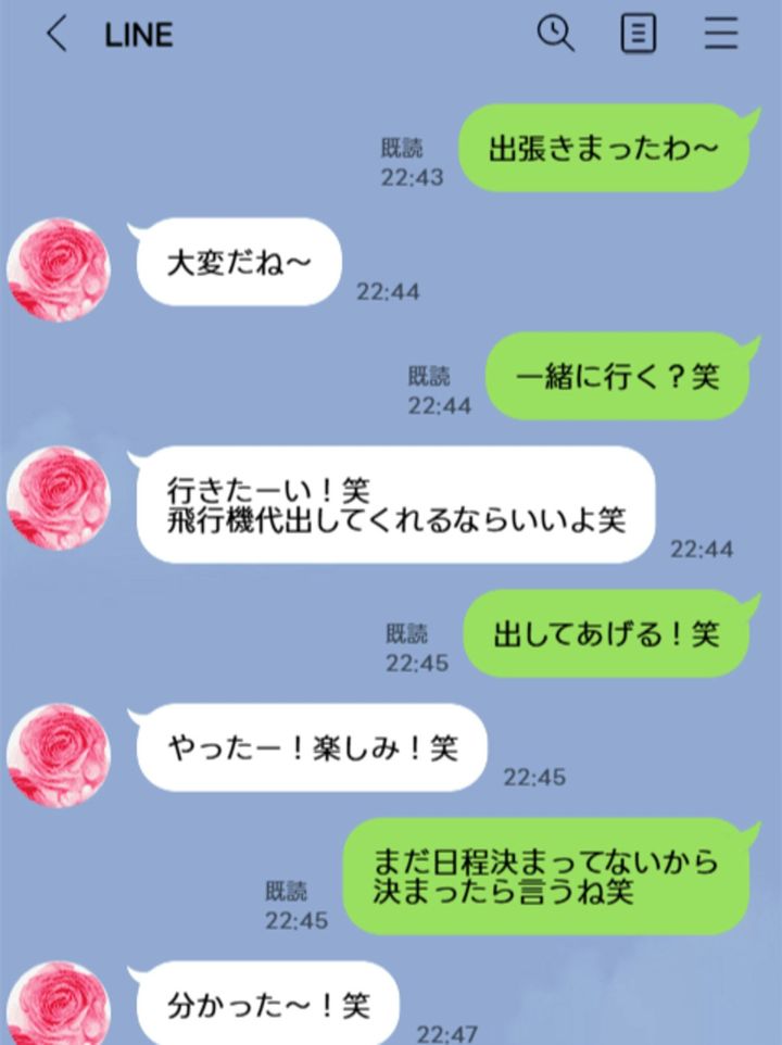 3. 夫が、キャバ嬢に「飛行機代、出してあげる」。出張に“連れて行く”約束のLINEを見てしまった