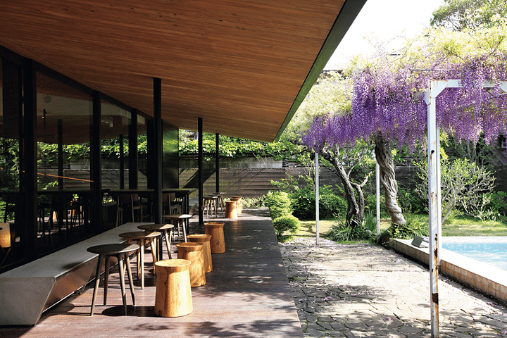 プールがある店舗は日本で唯一。世界的にも珍しいので、写真にぜひ収めたいところ。他にも横山氏が愛した桜の木など名物がたくさんあるので活かして。