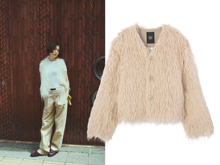 令和の【ファー】の最適解。シンプルかつスタンダードな服装に軽アウター感覚でまとって!