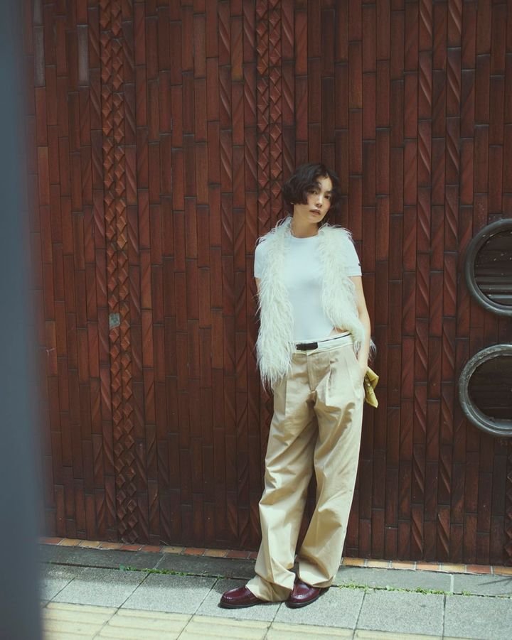 3. 令和の【ファー】の最適解。シンプルかつスタンダードな服装に軽アウター感覚でまとって!