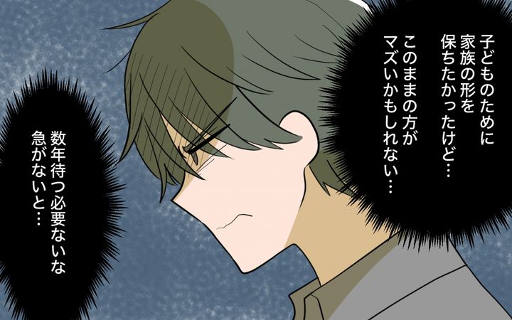 俺は、子どもたちのためにこの家族の形を保ちたいと思っていた。しかし、このままではかえって良くないのではないかと思い直した。咲は子どもたちの気持ちすら考えず、自分のことしか見ていない。動くなら、早い方がいいのかもしれない…。