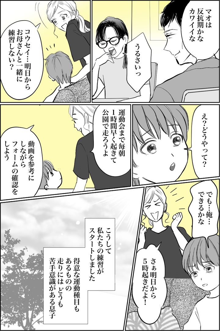 Cさんの息子は、小学3年生。反抗期の中1の姉にからかわれながらも、運動会に向けて、息子さんはCさんと一緒に早朝ランニングを2週間続けてきました。