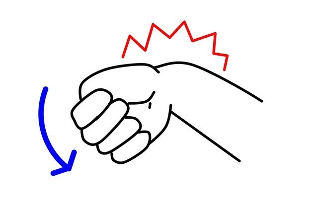 (2) 握ったまま小指側に拳を倒す