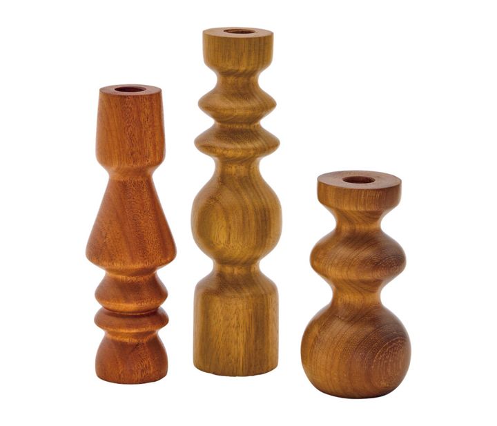 手彫りによる表情の違いを楽しみたい、〈ロミー・オブジェッティ〉のキャンドルホルダー。