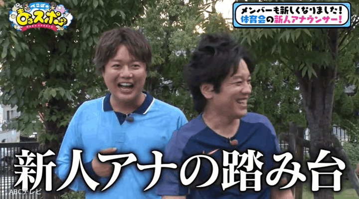 「(体育会水上スキー部の所属理由は)水の上を滑れたらかっこいいかなと思って!」と語る新貝アナに、MCであるぺこぱの松陰寺太勇は、「誰が陸の上を滑ってんだって!」とノリツッコミ。さらに松陰寺は、『ぺこぱのまるスポ』のアシスタントを若手アナウンサーが回替わりで担当することにも、「ABCの新人アナの踏み台!」とツッコみ、新貝アナから「違います違います!」「そんなそんな!」と苦笑交じりに否定された。